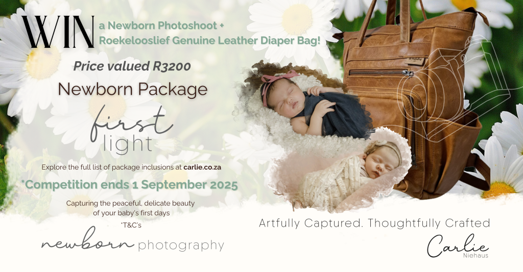 I'm celebrating all the amazing moms (and moms-to-be!) with a dreamy giveaway you wonโ€™t want to miss. One lucky winner will receive a professional newborn photoshoot and a gorgeous Roekelooslief genuine leather diaper bag โ€” a luxurious prize valued at R3200!